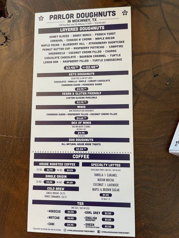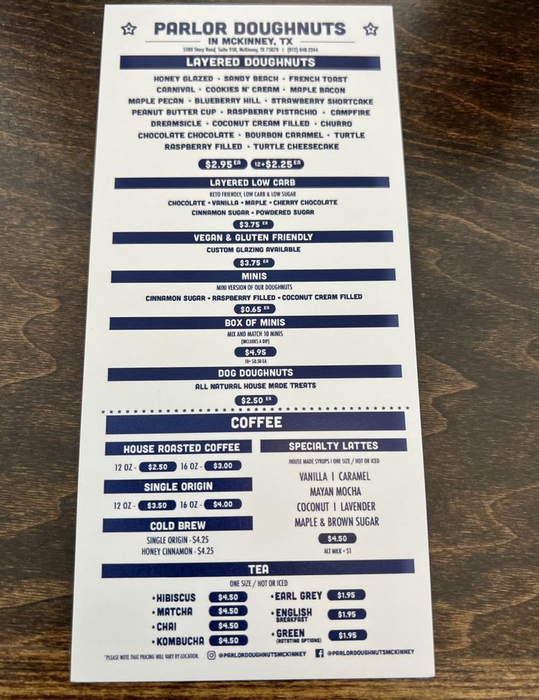 Parlor Doughnuts Menu